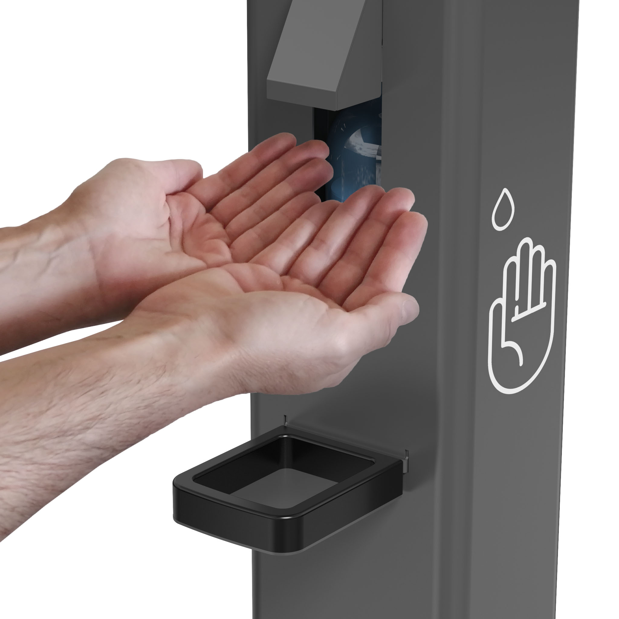 Met het mobiele desinfectiestation kunt u uw handen altijd en overal professioneel desinfecteren.